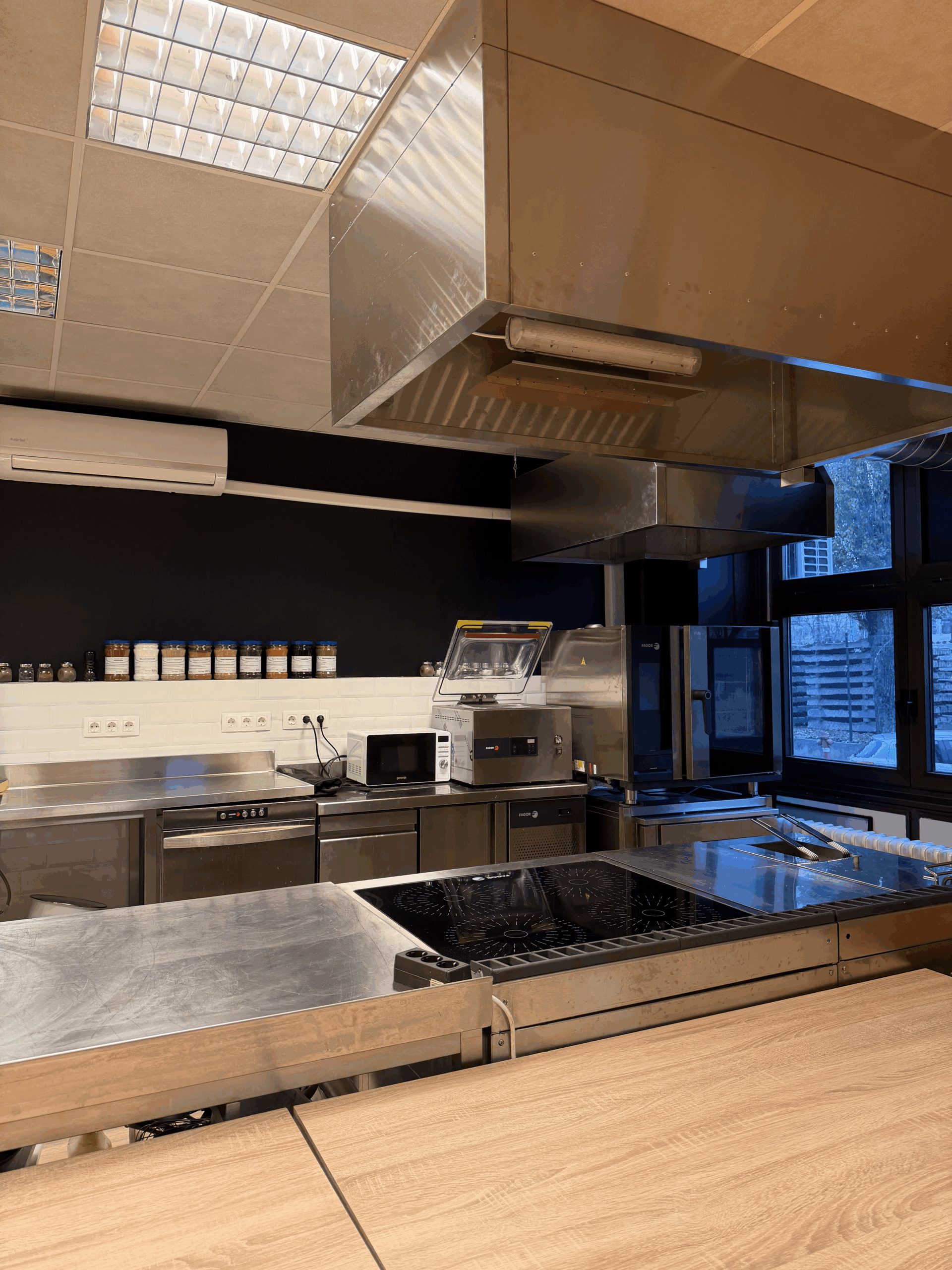 Konyhánkban a legmodernebb, kiváló minőségű Fagor Professional konyhai gépekkel dolgozunk, többek között kombi sütő, sokkoló és sous vide gép. Hiszünk abban, hogy a megfelelő géphasználat felerősíti az alkotói munkát és segíti a minőségi ételek elkészítését, így folyamatosan oktatjuk a gépek használatát.